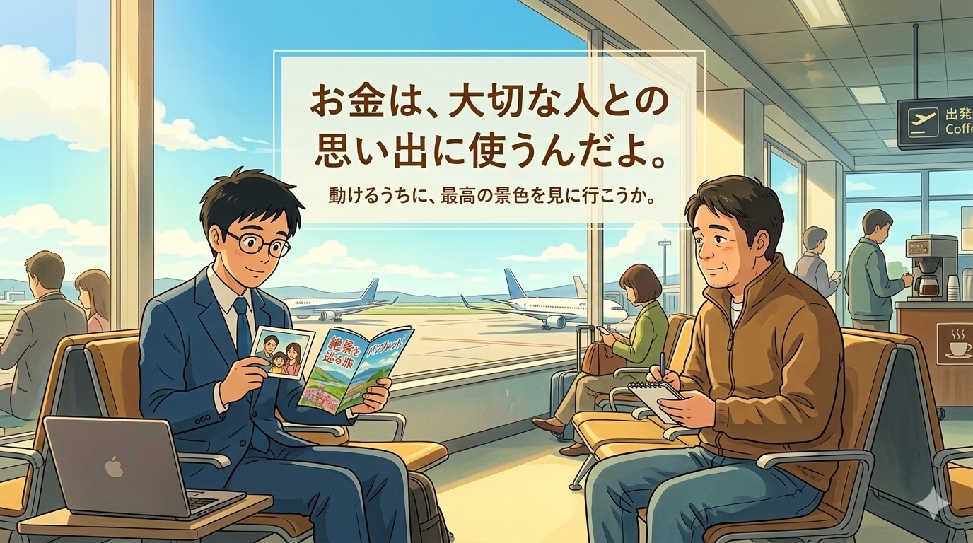 私たちが一生懸命に働いてお金を稼ぐのは、ただ口座の数字を増やすためじゃないんだよ。 大切な人が困っている時に飛行機に飛び乗るためであり、親が元気なうちに最高の景色を見せてあげるためなんだよね。