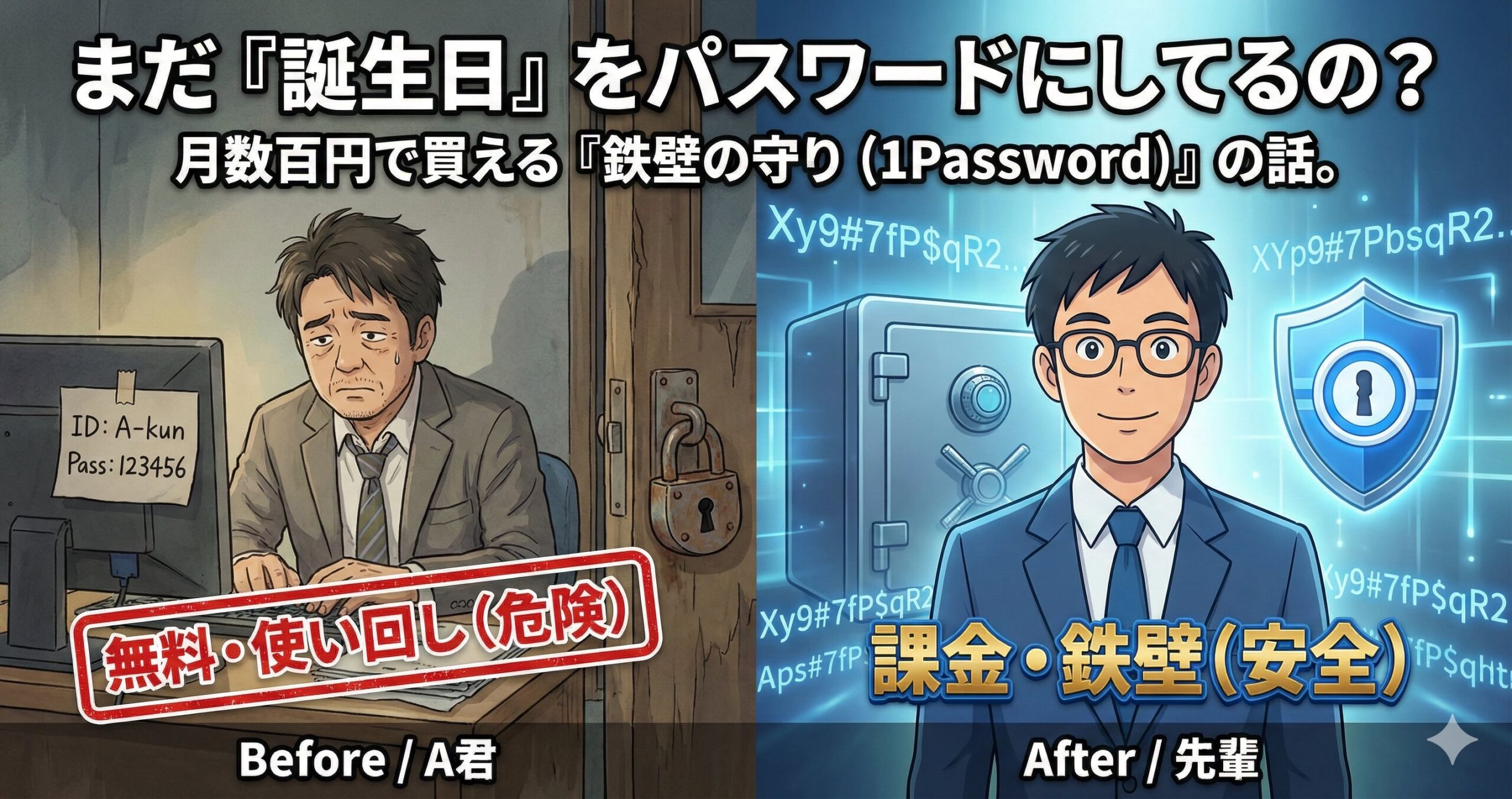 後背位A君、そこが甘いよ。 有料ツール(1Password)に課金する価値は、単なる「保存」じゃない。「守り」にあるんだ。