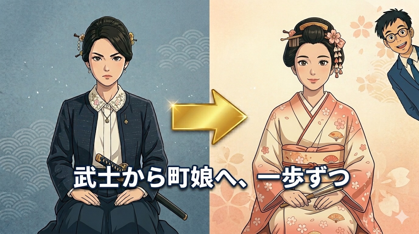 これは大きな変化なんだよ。武士のように凛として隙のなかったアリサちゃんが、「からかい」を「じゃれ合い」として受け取れるようになってきたんだよ。お堅い武士系女子から、ちょっと町娘のアリサちゃんに近づいてきたんだよ。