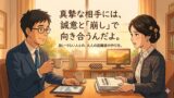 昨日の「凡事徹底」の話で、少しプレッシャーをかけてしまったかな? 「1回のミスで信頼がゼロになるなんて、胃が痛いです…。毎回完璧にチェックするなんて、人間には限界がありますよ」って顔をしているね。