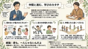 昨日はね、私が主催するAIでブログを書く勉強会(オフ会)を開いてきたんだよ。 教える立場として参加したんだけど、参加してくれた皆さんから、すごく大切なことを教わった一日だったんだよね。今日はその話をしてみようか。