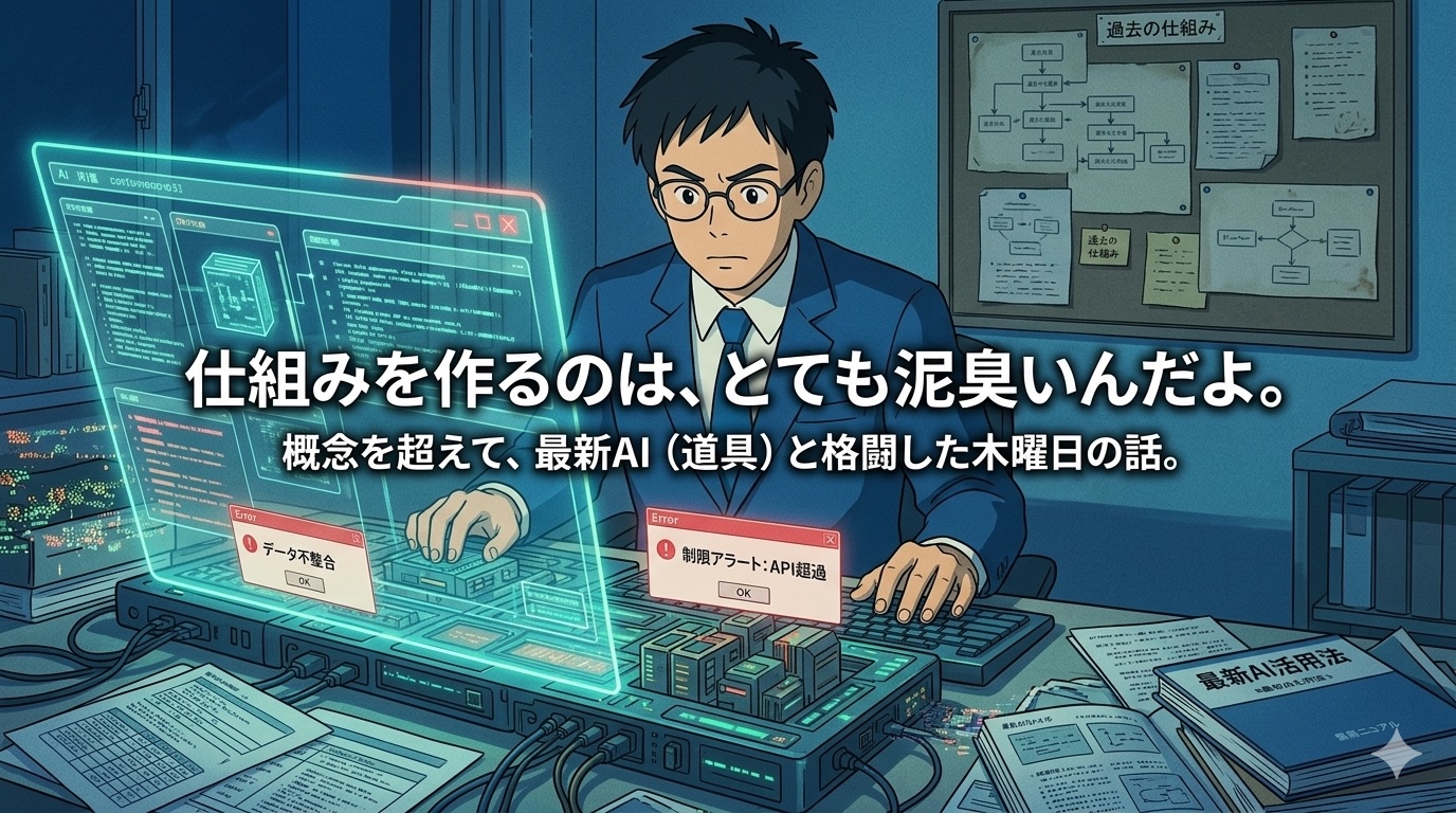 「仕組みを作れ」と言うのは簡単だけど、作るのは大変なんだよ。 でもね、この泥臭い「もがき」こそが、新しい技術を自分のものにして、概念を現実に落とし込むための、本物のスキルアップなんだよ。