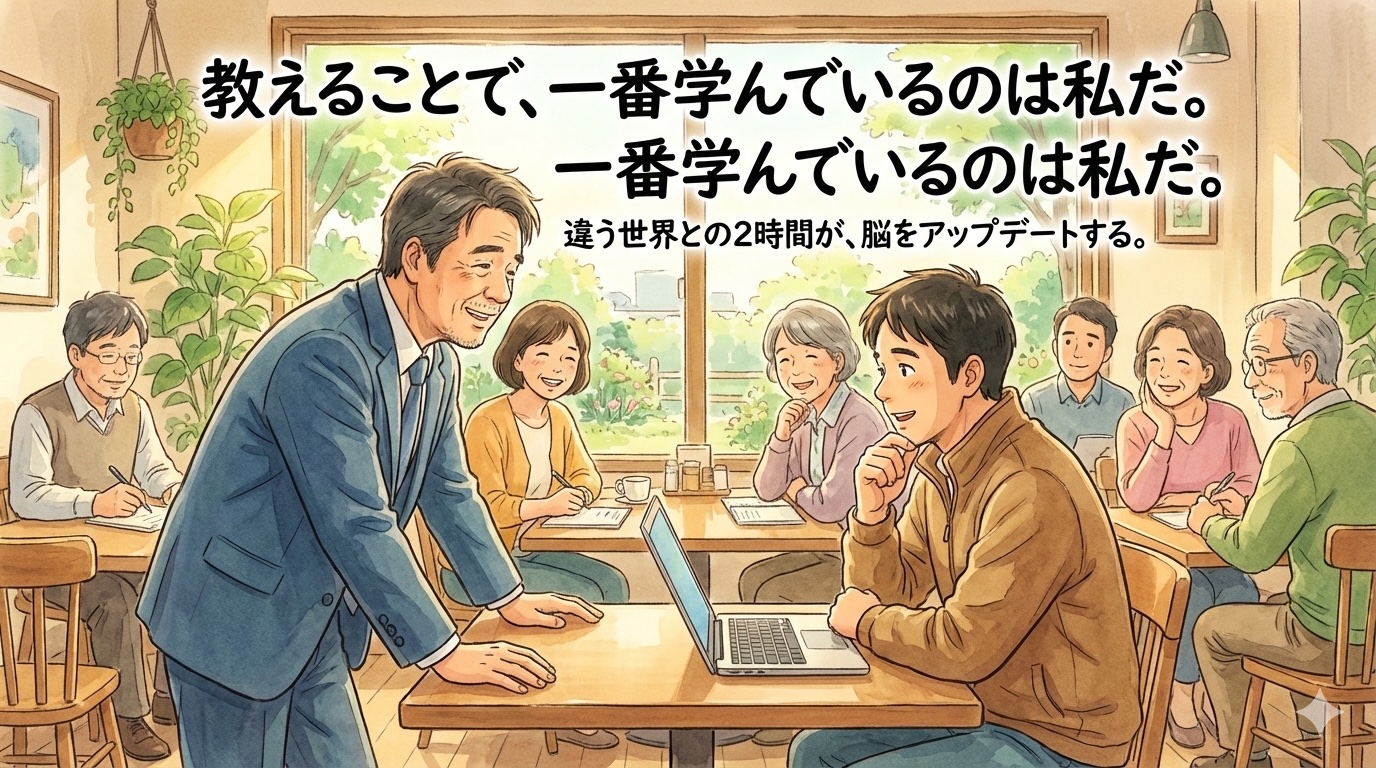 人はね、会社でお金をもらうだけじゃ、心の中のコップは満たされない生き物なんだ。 自分の持っている知識や経験が、目の前の「誰か」の役に立ち、感謝される。 その「私は社会に必要とされているんだ」という実感こそが、何にも代えがたい報酬なんだよね。