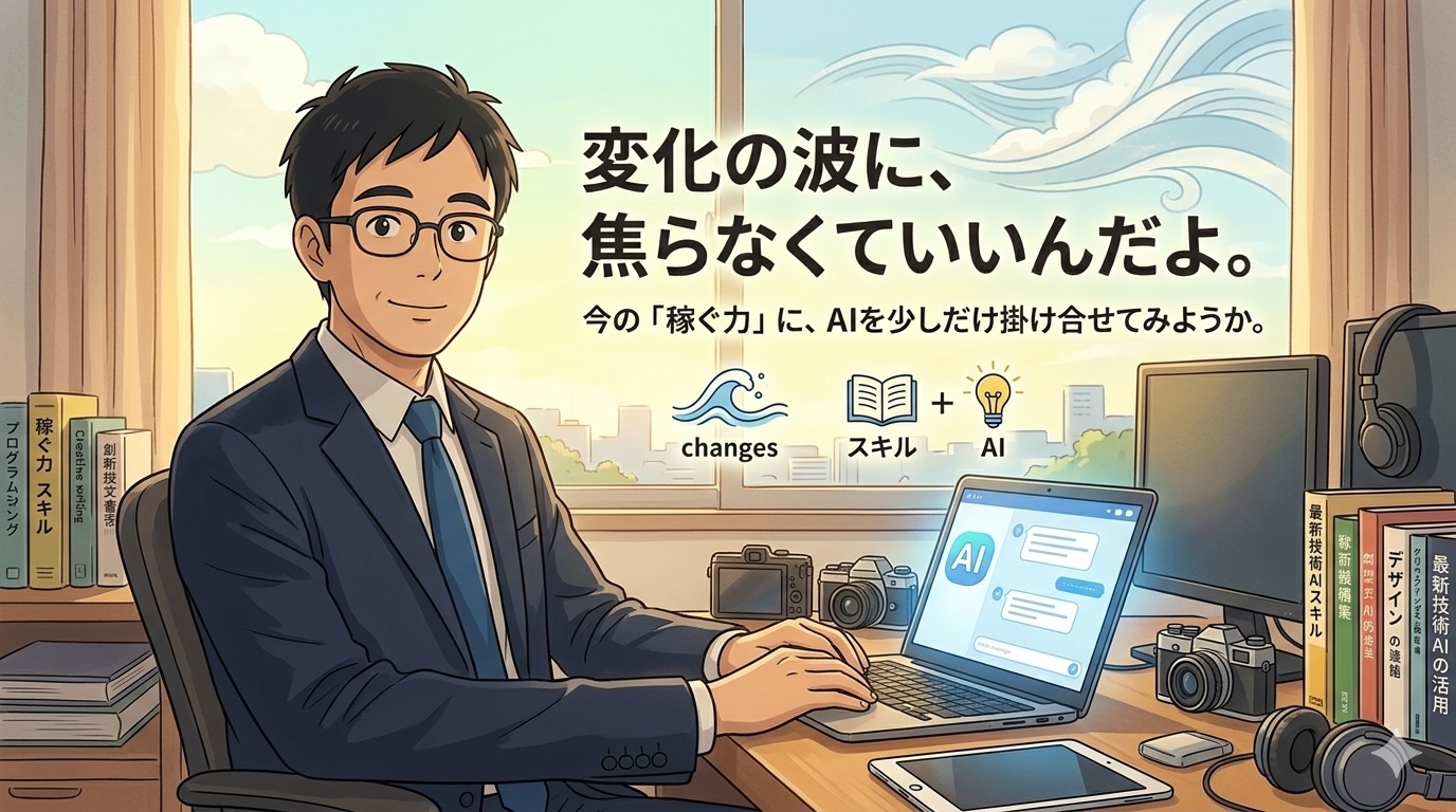 今の私たちが持っているシステム保守の知識や、確実に稼ぐための基本スキル。これを捨てる必要はまったくないんだよね。今の技術で稼ぐ力をしっかり持ちながら、新しいAIは「その稼ぐ力をさらに引き上げてくれる便利な道具」として、少しずつつまみ食いしていけばいいんだよ。