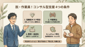 君はもう、言われた通りにキーボードを叩く「作業員」じゃない。 知恵と経験を貸し出し、相手を育てる「コンサルタント(先生)」として参加するんだ。