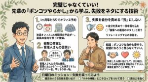 失敗した時、「最悪だ」と思うか、「これでまた一つ、後輩を笑わせる面白い話ができたぞ」と思うか。 この「捉え方(リフレーミング)」ひとつで、心の余裕って全く変わってくるんだよね。