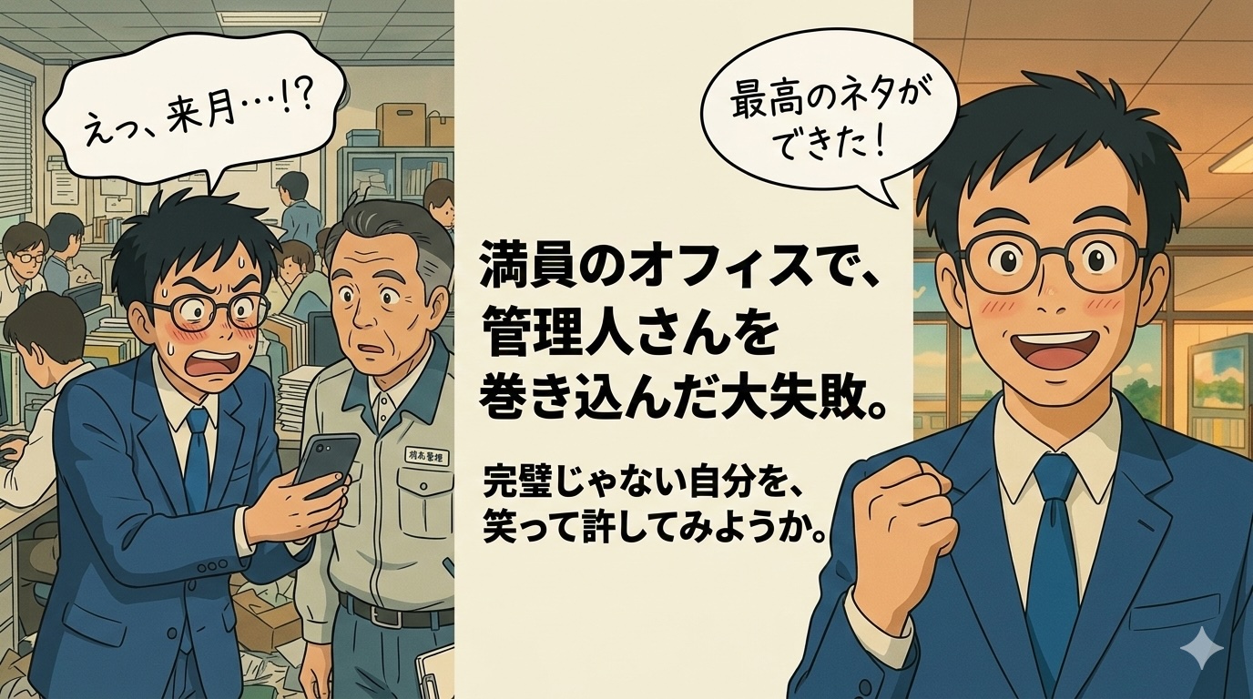 いつも君に「凡事徹底が大事だよ」とか「プロとしての責任感が〜」なんて偉そうなことを言っている私だけどね。今日は、そんな私の「穴があったら入りたい、盛大なやらかし」の話を聞いて笑ってほしいんだ。