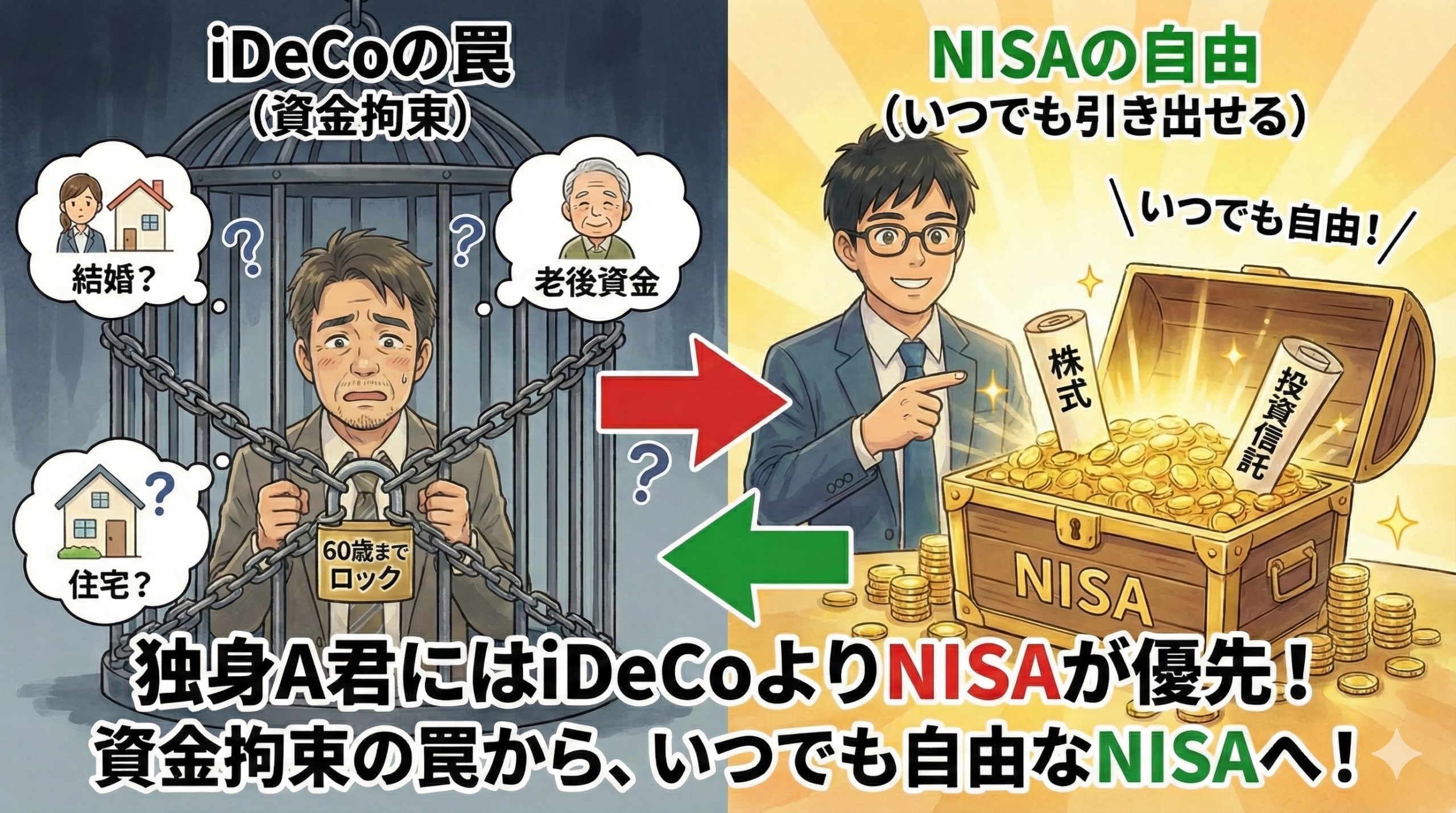 今日は、証券会社のサイトには小さくしか書かれていない、iDeCoの不都合な真実について話すね。これを読めば、なぜ私が「まずはNISA一択だ」と言うのか分かると思うよ。